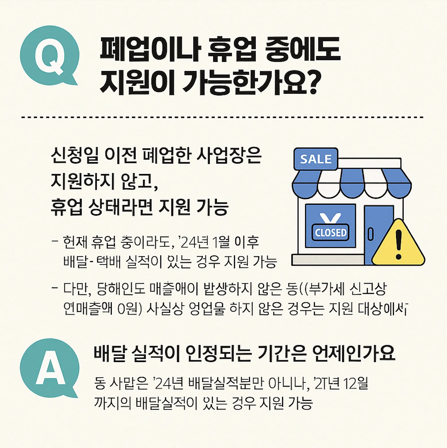 Q. 폐업이나 휴업 중에도 지원이 가능한가요?